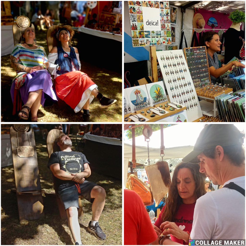 A nosa emoción estaba polo aire cando chegamos ao lugar do Festival Pardiñas! Á medida que nos achegábamos, o ambiente festivo xa nos envolvía, con artesáns talentosos a montar os seus coloridos postos. E adiviñade? As primeiras caras amigas que vimos foron as compañeiras de «Longa Vida«, esas artistas incríbeis que transforman retallos de roupas vellas en pezas de arte únicas e deslumbrantes. Foi como atopar velhas amigas, aínda que só nos coñecéramos das redes sociais!