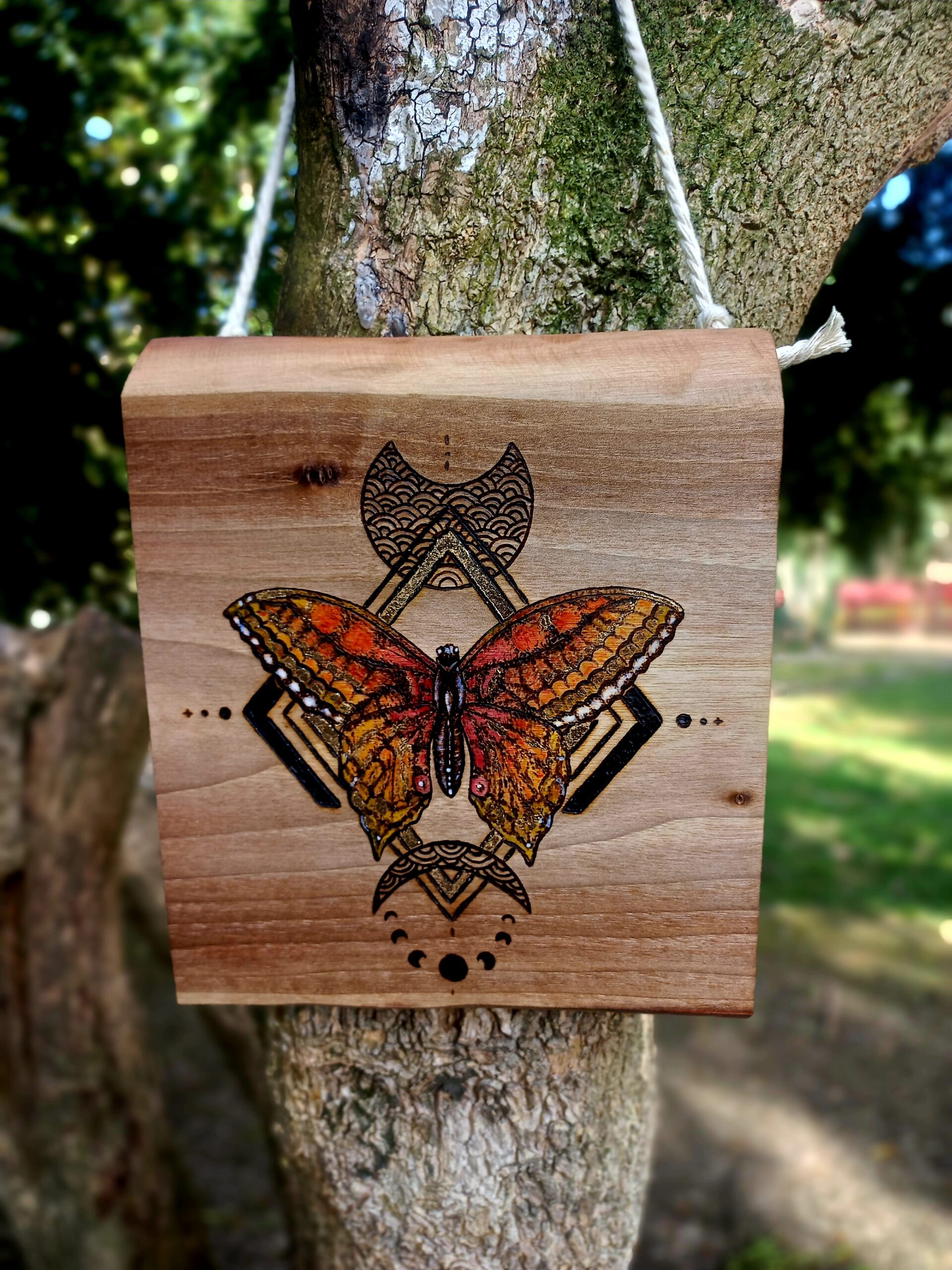 Engade un toque de natureza e arte ao teu fogar co noso Cartel Bolboreta. Esta peza destaca polo seu deseño detallado e o seu acabado artesanal, perfecta para quen busca un elemento decorativo único e cheo de personalidade. Este cartel non é só unha peza decorativa, senón tamén unha expresión da beleza natural capturada a través da arte do pirograbado.
