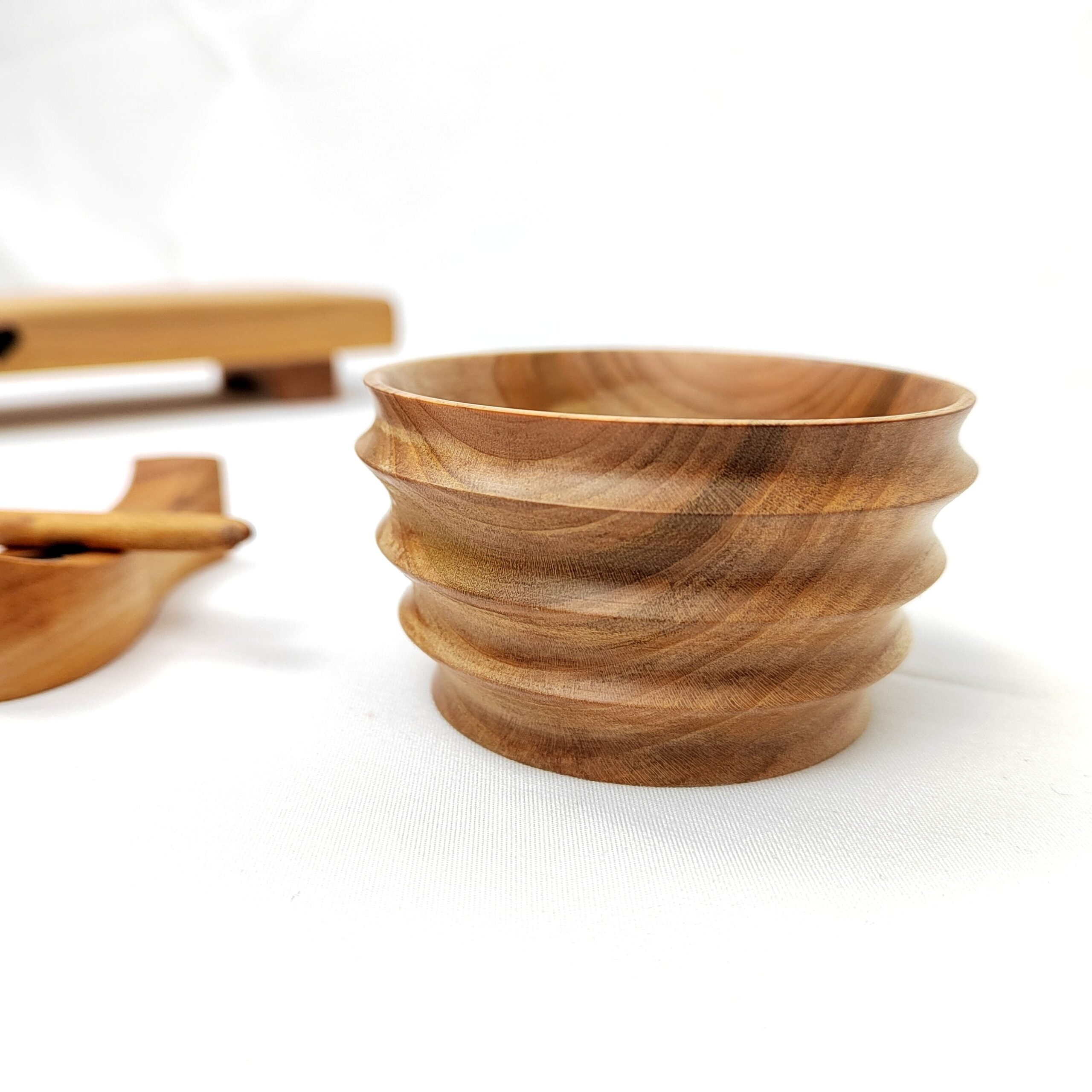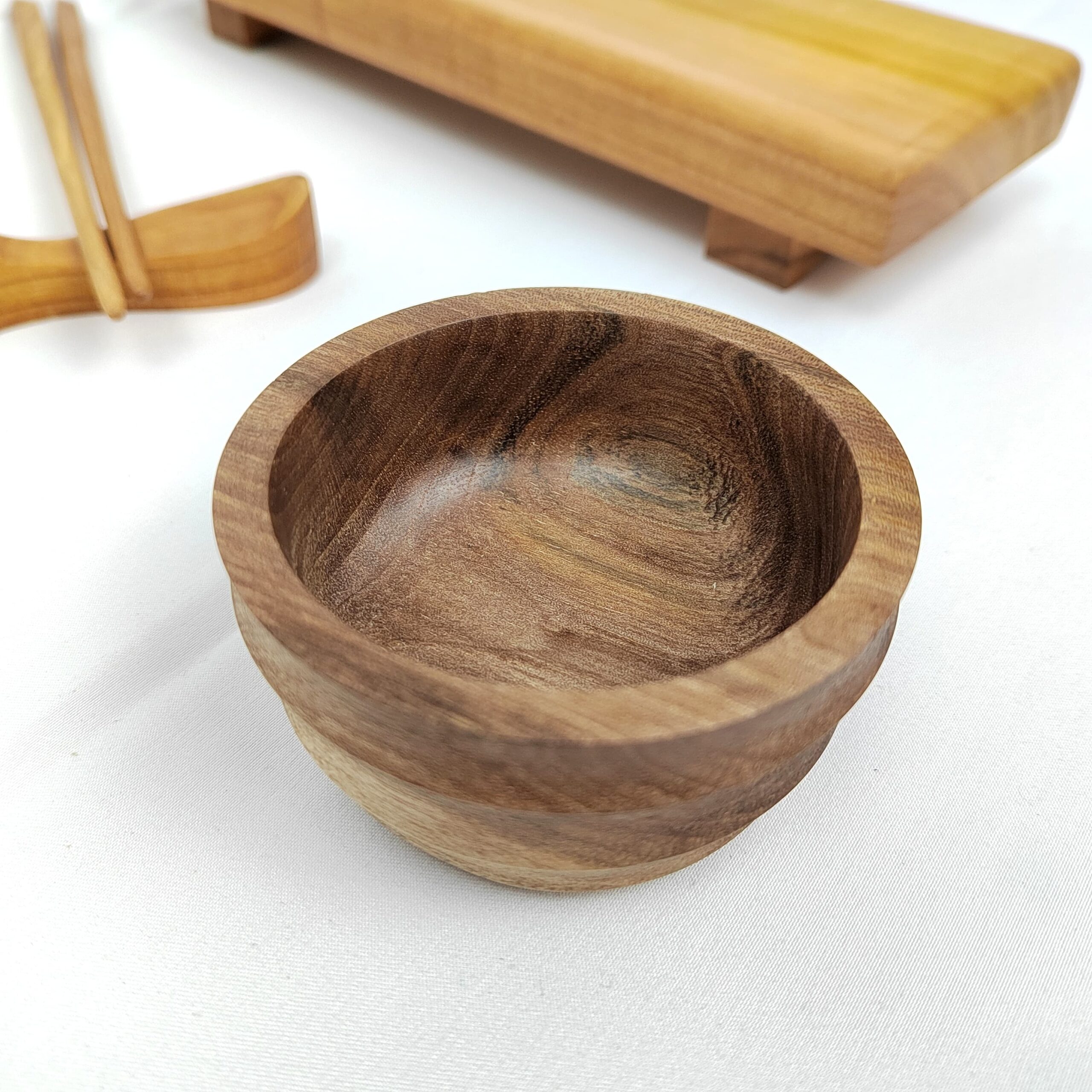 Descubre la elegancia y funcionalidad del Set de Sushi en madera de Cerezo . Este set artesanal está diseñado para los amantes del sushi que buscan una experiencia gastronómica auténtica y sofisticada. Cada pieza está hecha a mano con madera de cerezo de alta calidad, conocida por su durabilidad y belleza natural.